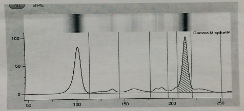 Plasma protein electrophoresis showed M spike (2.74 g/dl), and increased gamma globulin (3.41 g/dl) [figure 4].