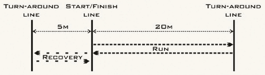 As shown in Figure 1, the performance was measured by distance covered in the Yo-Yo Intermittent Recovery Test Level 1 (Yo-Yo IR1). According to Krustrup et al.,[18] this test replicated in game physiological responses, allowing for meticulous examination of physical activity of team-sport athletes off the field, which served as a valid instrument. To familiarize the cadets with the Yo-Yo IR1, before starting the research, the cadets participated in the Yo-Yo IR1 test once during the program’s morning physical training session. At day 0 (baseline), day 6, and day 15, all participants performed (Military Movement Drill 1; 25 m verticals, laterals, and shuttle sprints) and then a submaximal test (the first five shuttle sprints (200 m) of the Yo-Yo IR1 that served as both a warm up and reminder of the exercise protocol). The Yo-Yo Intermittent Recovery Test included two 20 m shuttle runs with a 10 s recovery period cued audibly and measured distance covered by the cadets before exhaustion. When a participant failed to cover the 20 m distance in the allotted time, they were given a warning and the second time their performance was terminated and their distance was recorded.[19] The sprints were completed in several heats, to ensure sufficient research assistants and heart rate monitors were available.