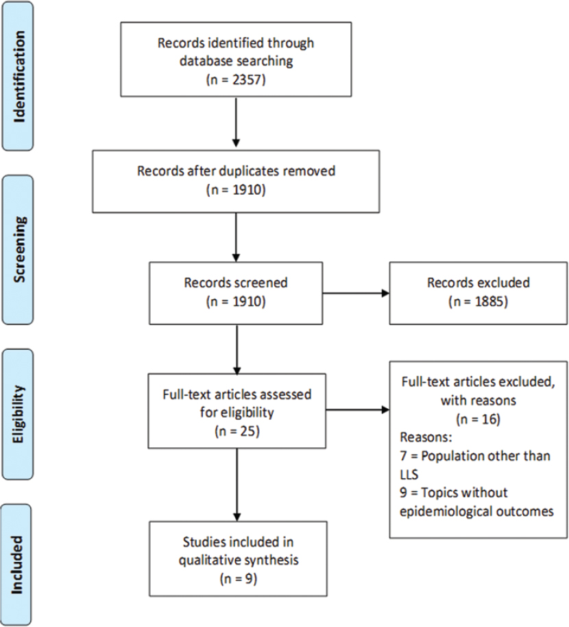 Methods: A systematic search of MEDLINE and EMBASE identified 9 studies published between November 2012 and July 2019 that assessed the epidemiological burden associated with LLS.